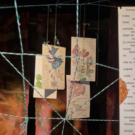 Cada flor y cada fragmento, está creado a partir de materiales rescatados: CDs, cartones, fichas, sábanas antiguas o estructuras de invernadero. La reutilización no es solo un gesto estético, sino una metáfora del potencial de renacer, transformar y florecer desde lo desechado. La diversidad de técnicas empleadas como el frottage, collage y el ensamblaje celebra también la riqueza de la biodiversidad como un canto a la vida.